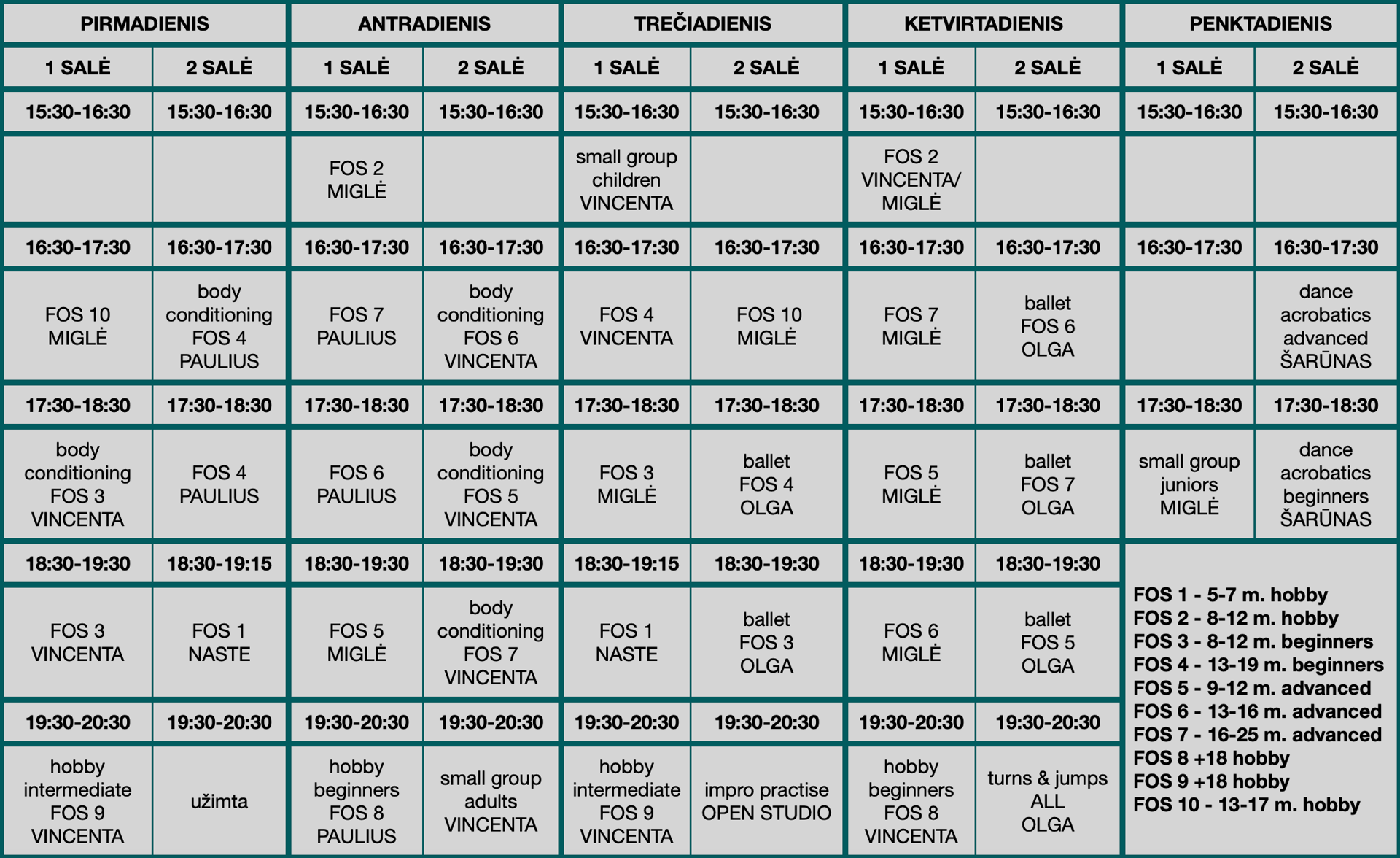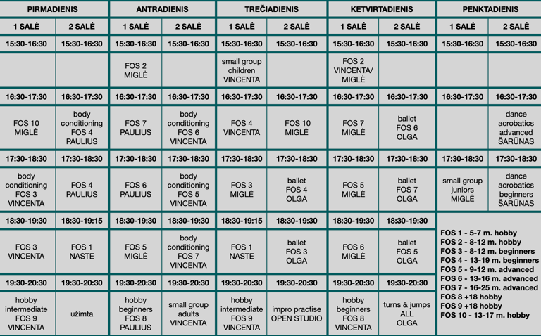 HOBBY GRUPĖS (FOS 1, 2, 8, 9, 10) – nedalyvauja konkursuose, šokama savo malonumui.